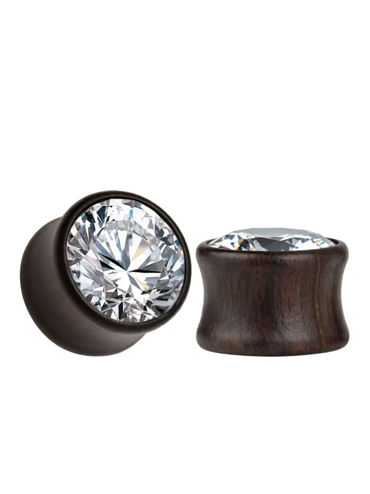 Плаги из черного дерева с прозрачным цирконом