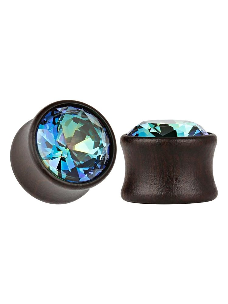 Плаги из черного дерева со вставкой из разноцветного циркона.
