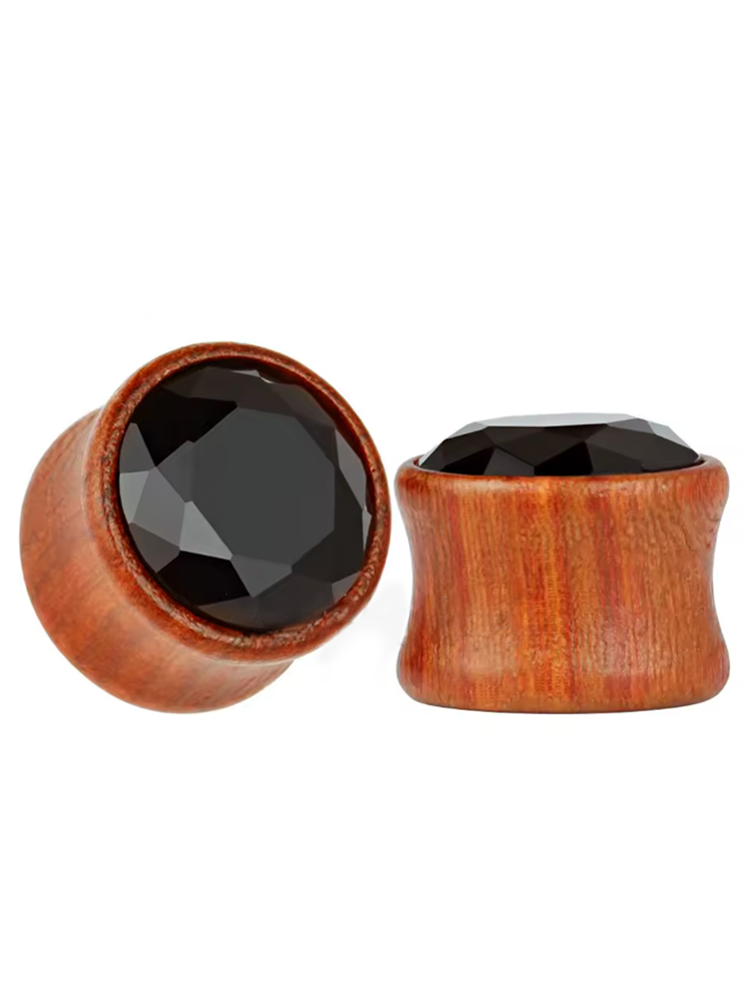 Плаги из красного дерева с черным цирконом