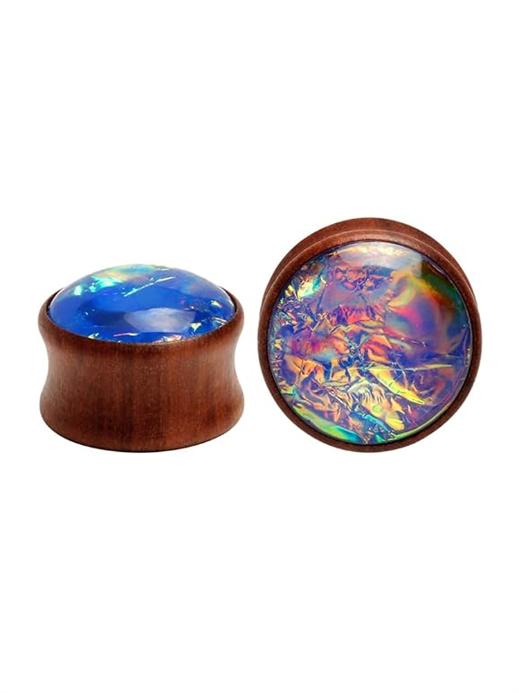 Плаги из сандалового дерева со вставкой из дихроичного стекла
