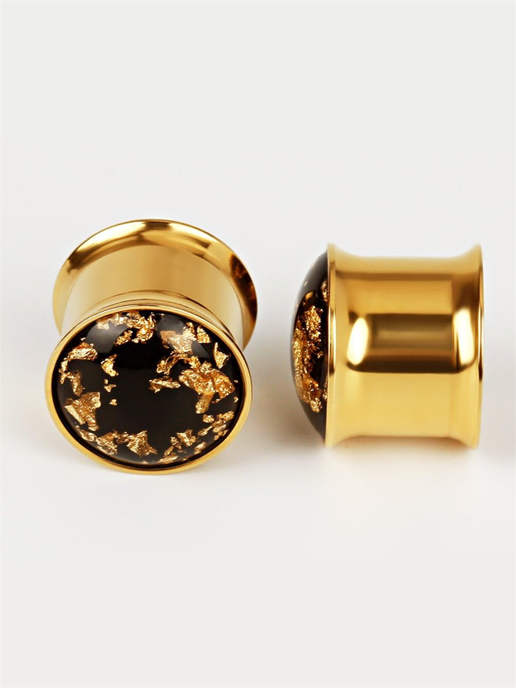 Плаги из стали 304 марки. С внешней стороны находится накладка с фольгой золотистого цвета.