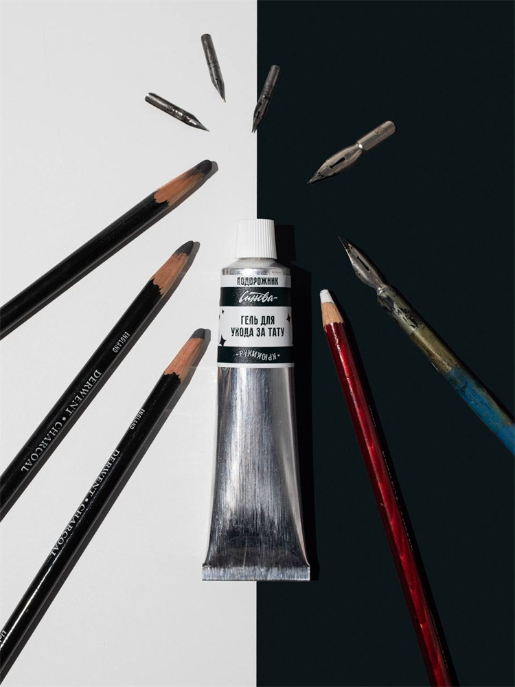 «Подорожник»— это защитный гель с минеральной основой, созданный для бережного ухода за татуировкой в период заживления. Он ускоряет восстановление кожи, предотвращает воспаление, сохраняет яркость пигмента, обеспечивает комфортное и быстрое заживление. Лимитированная серия созданная в коллаборации с тату студией "Руки Крюки"