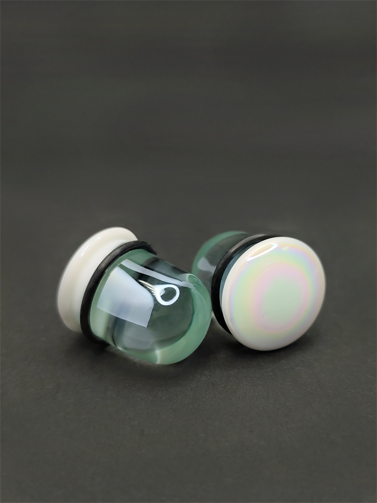 Плаги из стекла с AB-накладкой, создающей нежные и деликатные переливы.