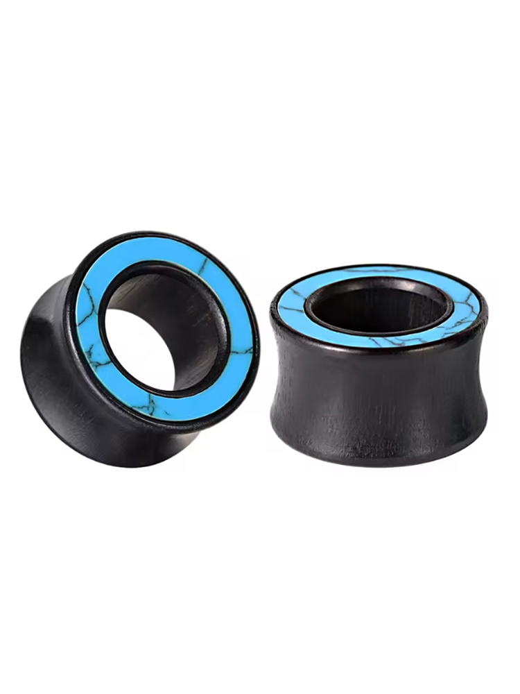 Тоннели из высококачественного черного дерева со вставкой из синей бирюзы.