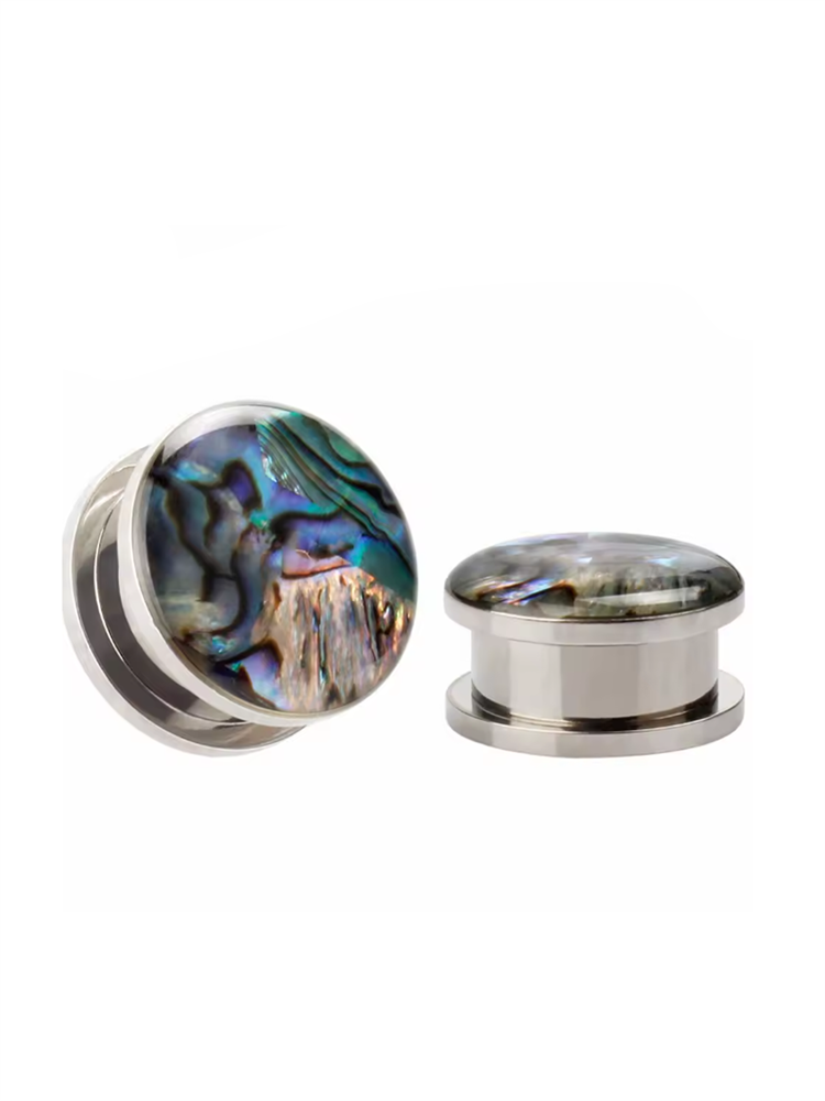 Тоннели из нержавеющей стали 304 марки. Накладка выполнена из разноцветного перламутра. Узор и цвет может быть индивидуальным для каждого украшения в виду материала.